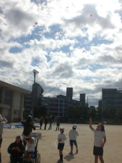 閉会式には、それぞれの願い事をつけた風船を、一斉に空へ飛ばしました。