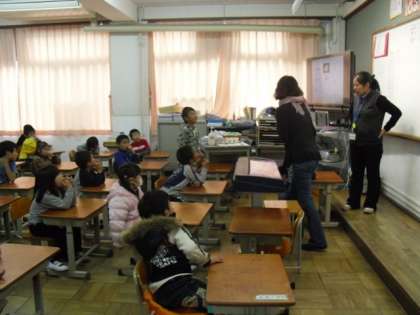 *本校区には中国残留邦人の方をはじめ中国にルーツのある方が多く在住されています。小栗栖校ではお互いの違いを認め合う「多文化共生教育」を人権教育の柱にして学習を進めています。1年生には身近な文化を知ることから「中国」について正しい理解をしようと,ネイティブのゲストティーチャーを招いて楽しいひとときを過ごしました。