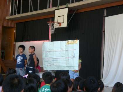 全校のみんなと、保護者のみなさん、たくさんの人が見ている中でしたが、大きな声ではっきりと話すことができました。