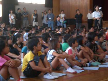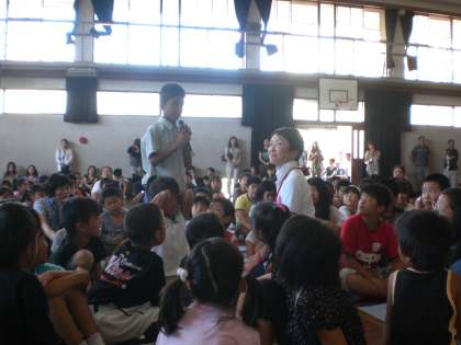 がんばっている3年生の発表を、他学年のみんなも真剣に聞いてくれていました。