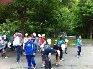 午前中の主な活動は「自然観察」です。山の家の所員の方に施設周辺の自然についていろいろと教えていただきました。