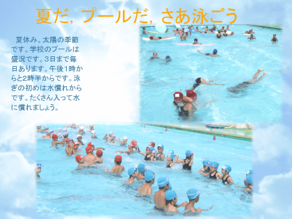 いよいよ夏休みです。学習に水泳にどんどん学校へ行きましょう。