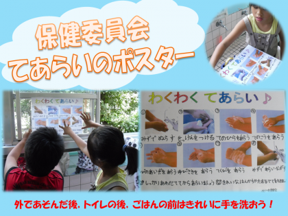 保健委員会のみんなが,手あらいのポスターをつくりました。