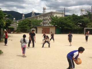 毎週水曜日は,教室のごみひろい程度の掃除にして,30分間の長い昼休みを行っています。運動場で,ソフトバレーボールやサッカーを楽しむ児童もいれば,中庭でカエルやメダカを追いかけて遊ぶ児童もいます。