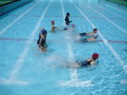 準備体操をしてシャワーにかかった後は,プールの約束を確認しました。その後は,楽しい水遊びです。ワニさん歩きやまたくぐりなどとても楽しく学習しました。