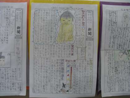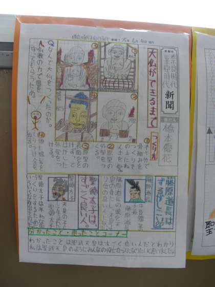 6年生は歴史の学習をしています。一つの時代の学習が終わるごとに,学習のまとめとして,一人一人が「歴史しんぶん」を作成しています。