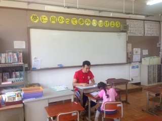 外国につながる児童が,生活言語を習得するために,担当教員が抽出して日本語初期指導を行っています。