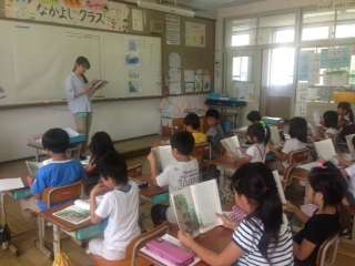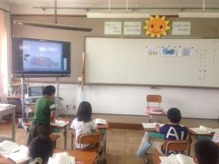 今日は,心に残った場面を見つけて感想を書くことを学習課題として,スイミーの場面について挿絵をもとに話し合いました。
