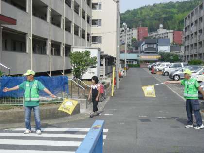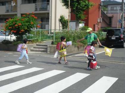 朝から暑い日が続きますが,「見守り隊」の方々に,登校時と下校時に毎日子ども達を見守っていただき,安全に通学しています。