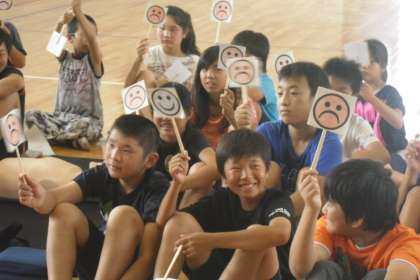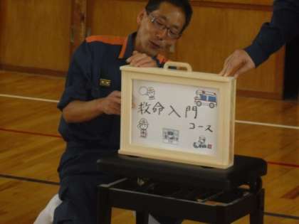 最初は,紙芝居をつかって○×クイズ形式で,応急手当の大切さを学びました。いろいろと工夫してもらって楽しい学習となりました。