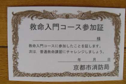 最後には,全員に「救命入門コース参加証」をいただきました。