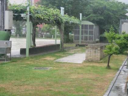 校庭の芝生も,久しぶりの雨に喜んでいるようです。