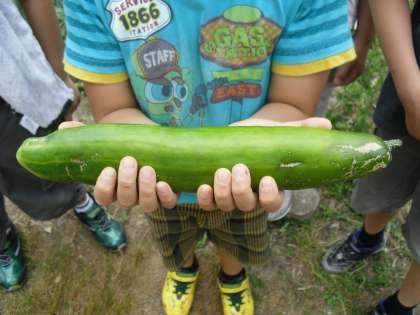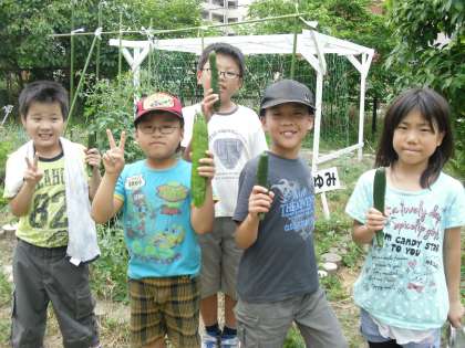 きゅうりを収穫しました。給食の時間にみんなでおいしく食べました。