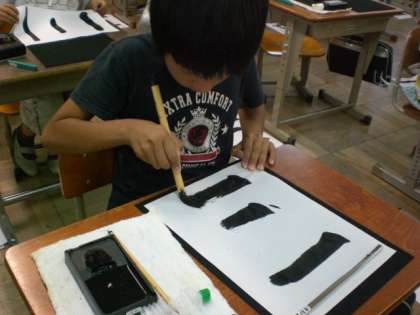 習字道具を持ってから毛筆の学習をすごく楽しみにしていました。初めての習字も,一人一人の個性が良く出ていて,どれもすばらしい文字です。