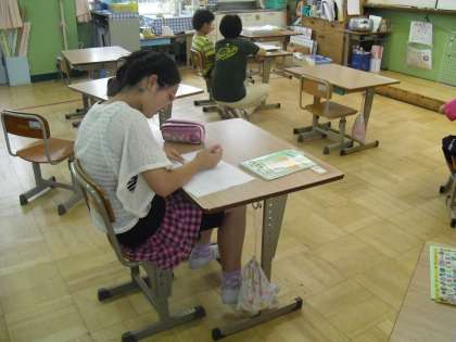 高学年の児童は,プリント学習でどんどん問題を解いています。低学年の児童は,自分のやり方で,数図ブロックをつかって問題を解いています。みんな自分に合った学習のやり方で力を付けています。