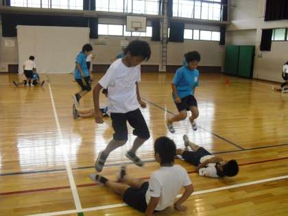 少し蒸し暑い体育館でしたが,ストレッチやアップをしっかりして基礎体力を付けています。