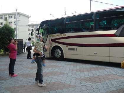 バスに乗って、さあ、若狭湾青少年自然の家に向かって、出発です。