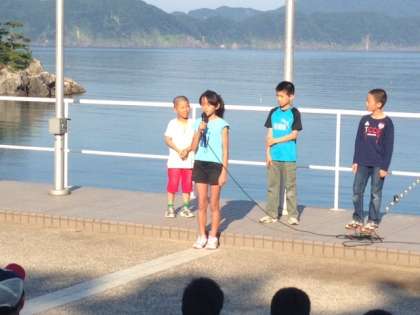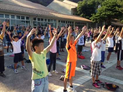 旗揚げの後、今日一日の意気込みを発表したり、小栗栖小学校の紹介をしたりしました。