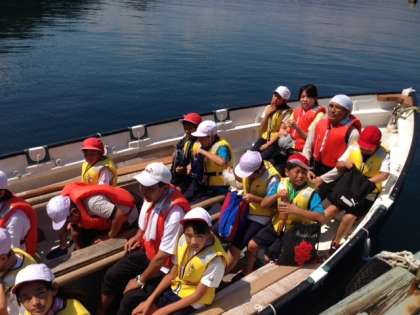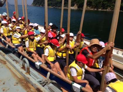 みんなでそろえて船をこげるよう練習しました。つづく・・・