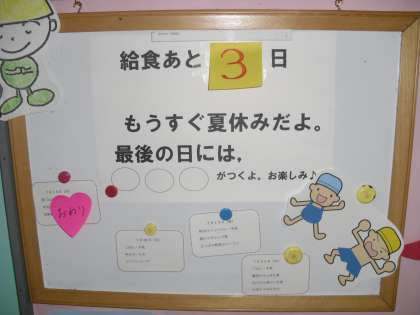 給食もあと3日となりました。夏休みに入っても朝・昼・晩と一日3食きちんと食べましょう。