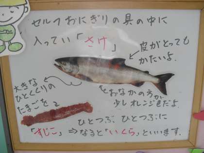 さけは,川で産まれて海で大きく育ちます。4年くらいたつと産まれた川に戻ってきて卵を産みます。さけのたまごは,「イクラ」といいます。体を作るタンパク質,体の調子を整えるビタミンを多く含みます。