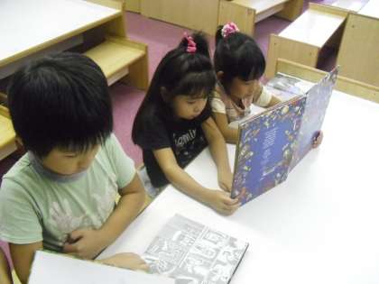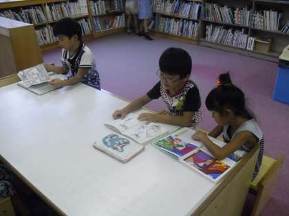 1年生は,国語の学習として図書室で読書をしました。図書室の使い方もよくわかっていて,静かに自分が読みたい本を読んでいました。