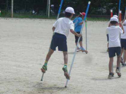 今日も一輪車と竹馬の練習をしました。一輪車の習得には時間がかかりそうですが,竹馬ではずいぶん上達して乗って歩ける児童が増えました。