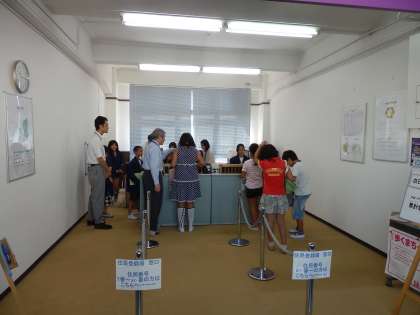 スチューデントシティーの学習には,働くだけではなく,住民としての生活の学習もあります。そのため,銀行に行って,給料から電子マネーにチャージしたり,区役所に行って税金を納めたりすることも必要です。