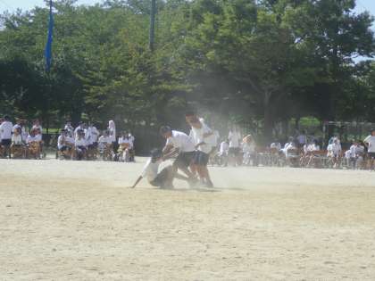 小学校の時とは見違えるようにたくましくなった卒業生達が,力一杯競技をしていました。