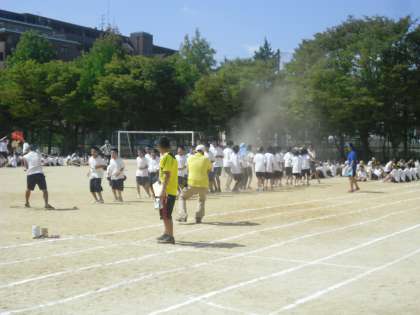 夏のように暑い陽射しの中,小栗栖中学校の「体育祭」が行われましたので,校長が参観させてもらいました。