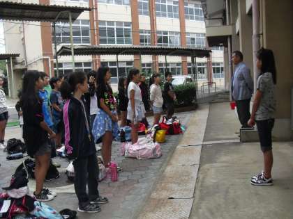 いつもより早い7時20分に集合して,出発の会を行いました。