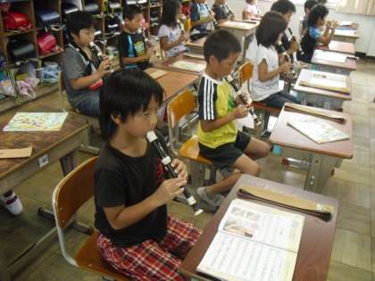3年生は音楽の時間にリコーダーの演奏をがんばっています。速いリズムやゆっくりしたリズムに合わせて上手に演奏ができるようになりました。