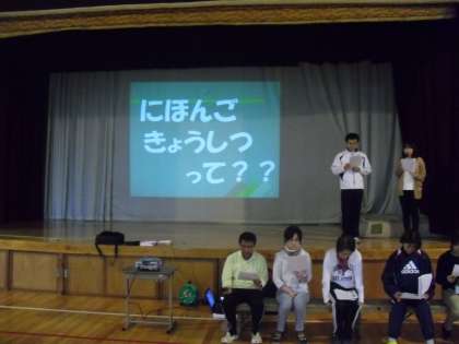 10月27日(日)の日曜参観で,「人権多文化授業」を全校で取り組みます。その後,教職員で「日本語教室って?」というスライド劇を行います。今日は研修として教職員で練習を行いました。来週にあと1回リハーサルを行って,いいものを子ども達や保護者の方々に見てもらいたいと考えています。
