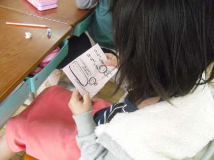 2年生は栄養教諭の早光先生の食の指導として,「苦手な食べ物の食べ方を考えよう」という学習をしました。苦手の食べ物も魔法の食べ方をすれば,平気で食べられるという学習でした。先生から「まほうのたべかた」というしおりをいただいたので,大切に机の中にしまっていました。