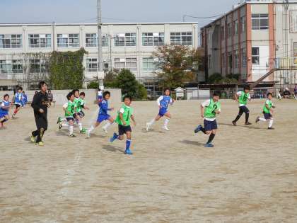 春日野小学校で全市のサッカー部活動交流会が行われました。5・6年生の部は,3試合すべての試合に勝つことができました。4年生は,1敗と1引き分けでしたが,4年生だけの力で協力してよい試合になりました。