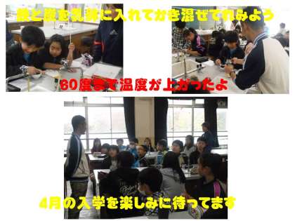 とても楽しい授業で,50分という授業時間があっという間に終わりました。4月からの中学校生活がとても楽しみになりました。