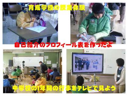 また,育成学級では,「自己紹介」をするためのプロフィール表を作って,発表もしました。その後は,中学校の1年間の活動をテレビで見せてもらいました。