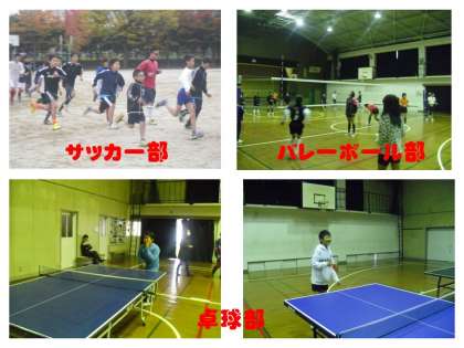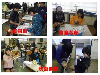 運動部活動は,サッカー,テニス,バレーボール,陸上,卓球,野球があり,文化系部活動は,美術,家庭科,吹奏楽がありました。