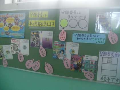 図書委員会の掲示板には,「分類番号」についてくわしく説明をしてくれています。分類番号の意味が分かると本が探しやくすなりますね。