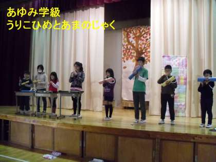 あゆみ学級は,みんなで力を合わせて劇と音楽をがんばります。