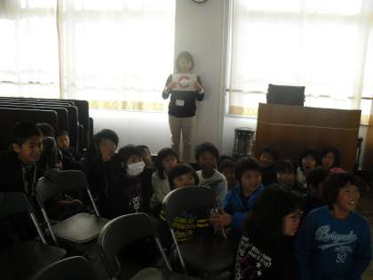 4年生が「気候ネットワーク」の講師の方々にお世話になって,環境学習に取り組んでいます。今回は,「地球温暖化」を話題に環境学習の大切さに気付こうと,氷河が溶ける写真や地球の温度変化のグラフを見ながら,発見したことを子どもたちが発表していました。