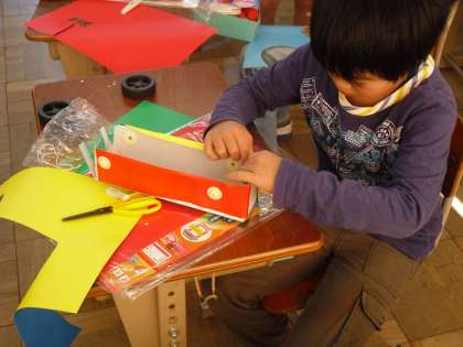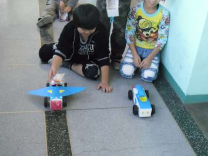 3年生は図工で,輪ゴムで走る仕組みを使って乗ってみたいと思う夢の車を作りました。よく走るためにどうしたらいいのか?かっこよくするためにどんなデザインがいいのかを考えて作っていました。