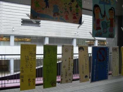 また,展示コーナーでは6年生の作った人権標語も展示されていました。