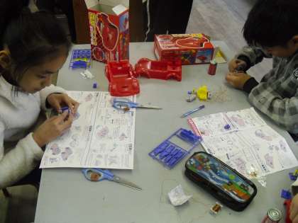 モーターの回る仕組みを生かして設計図を見ながら真剣に作っていました。