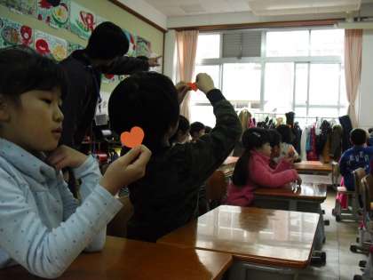ひとりずつプレゼントしてもらったハートのカードを光のあたる方にかざすと・・