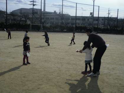 1年生は生活科で「きせつとあそぼう」という学習を行っています。今日は,「ふゆもげんきに」という内容で,冬の遊びを運動場に出てみんなでしました。