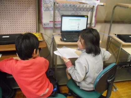 今日は,コンピューター室に行ってパソコンでいろいろな国のお正月のことや料理などの文化について調べました。