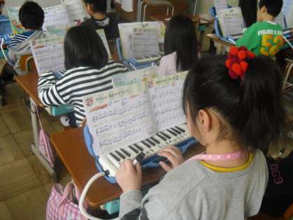 お互いの音を良く聞いて,音を合わせる楽しさを感じながら「夕やけこやけ」を鍵盤ハーモニカで演奏しました。