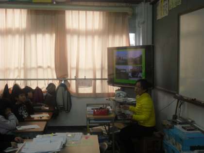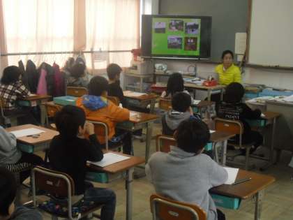3年生は,総合的な学習の時間に「外国の学校」について学習しました。今日は,本校の保護者である「王 崇鞠(オウ スウキュウ)」さんをゲストティーチャーとして招いて,中国の小学校のことを教えてもらいました。子ども達が分かり易いようにと,自分でプレゼンテーションを作ってきてくださいました。