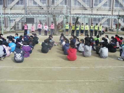 児童会と集会体育委員会が中心となって「ドッジボール大会」が行われました。24班のポプラグループ(縦割りグループ)が4班ごとにトーナメントでドッジボールの試合を行いました。集会体育委員会の児童がルール説明や注意事項を説明した後,それぞれのチームが2試合ずつ試合をしました。